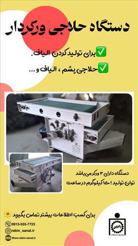 دستگاه حلاجی ورکردار اين دستگاه دارای 3 ورکر یا 5 ورکر میباشد و الیاف خام را به الیاف سیلیکونی درجه یک تبدیل می کند . براي حلاجي و توليد الياف مي باشد و توان توليد : 150 كيلوگرم در هر ساعت براي كسب اطلاعات بيشتر تماس بگيريد 09135557723